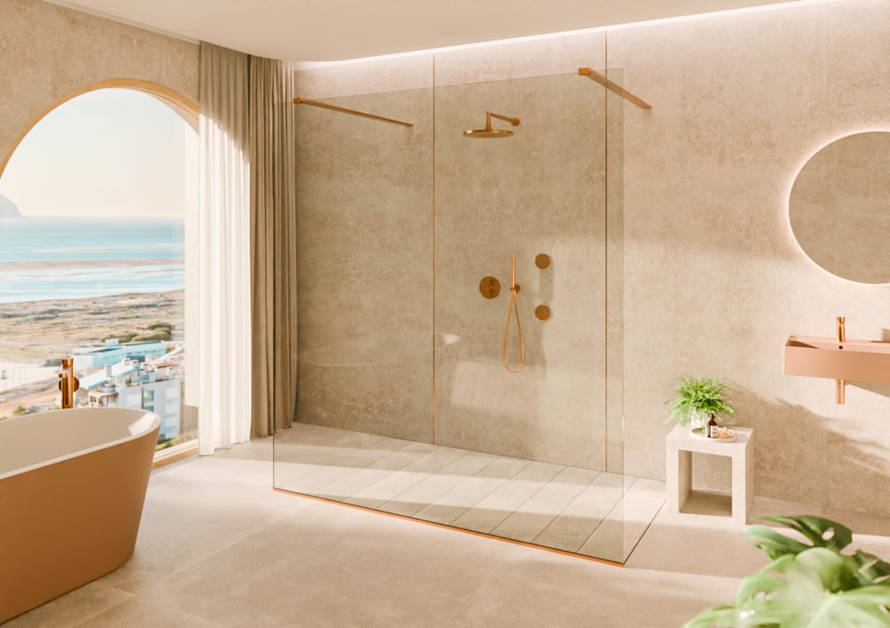 La escena, iluminada con luz natural y acabados metálicos en cobre cepillado, refuerza el carácter premium del producto y la calidad constructiva asociada a las soluciones industriales de Butech.